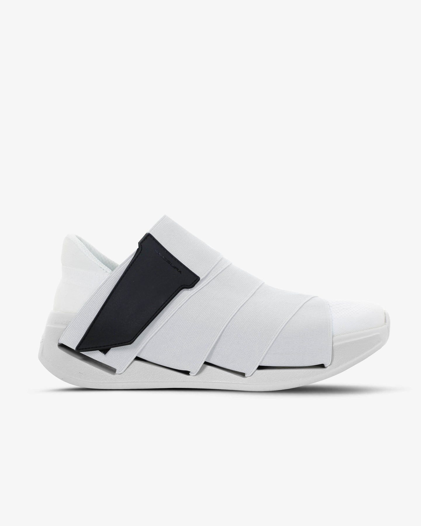 Tomaia elastica di colore bianco resistente e avvolgente. Apertura e chiusura con velcro in gomma. La mancanza del procedimento di montaggio industriale riduce l’emissione di Co2 (-50%).
