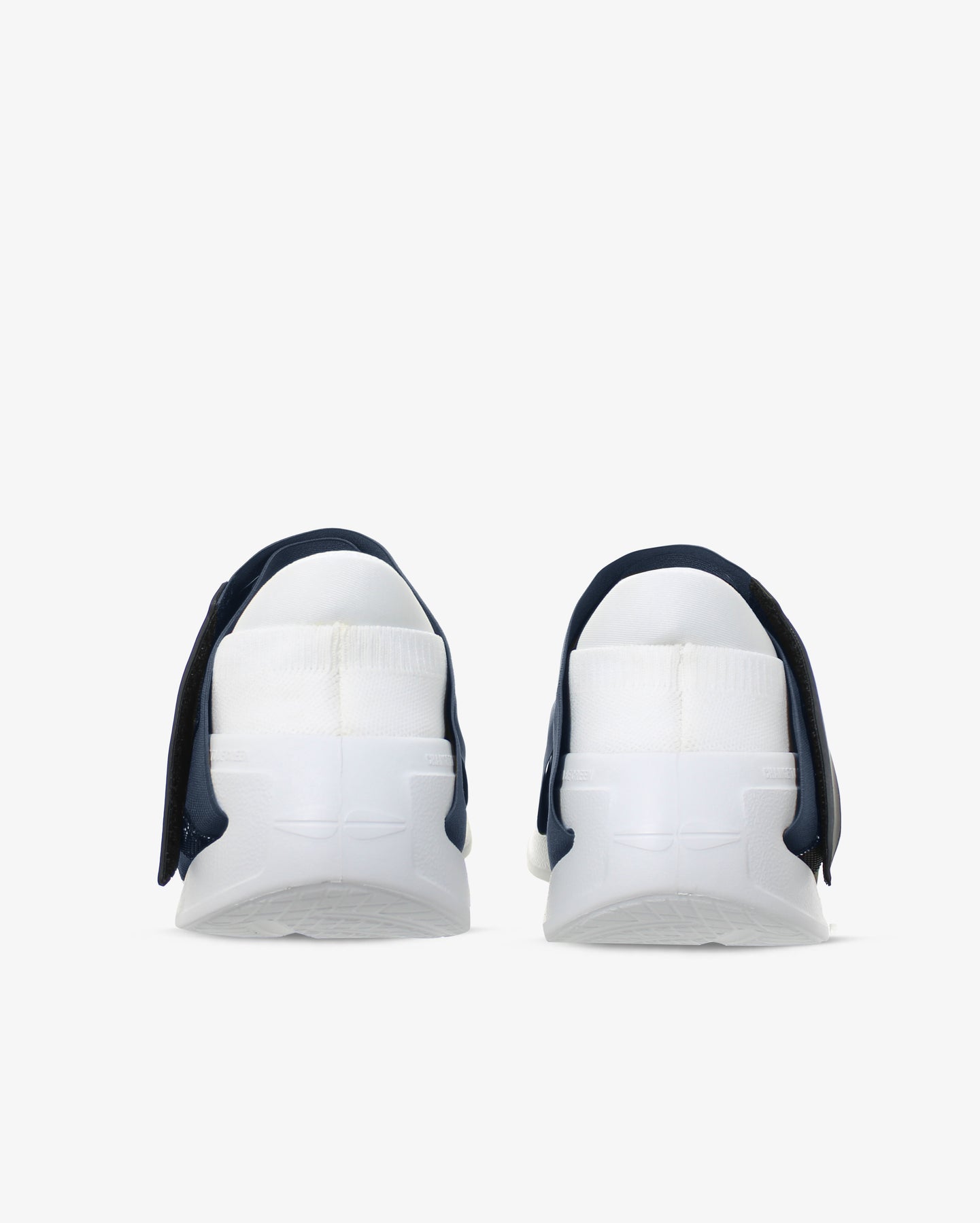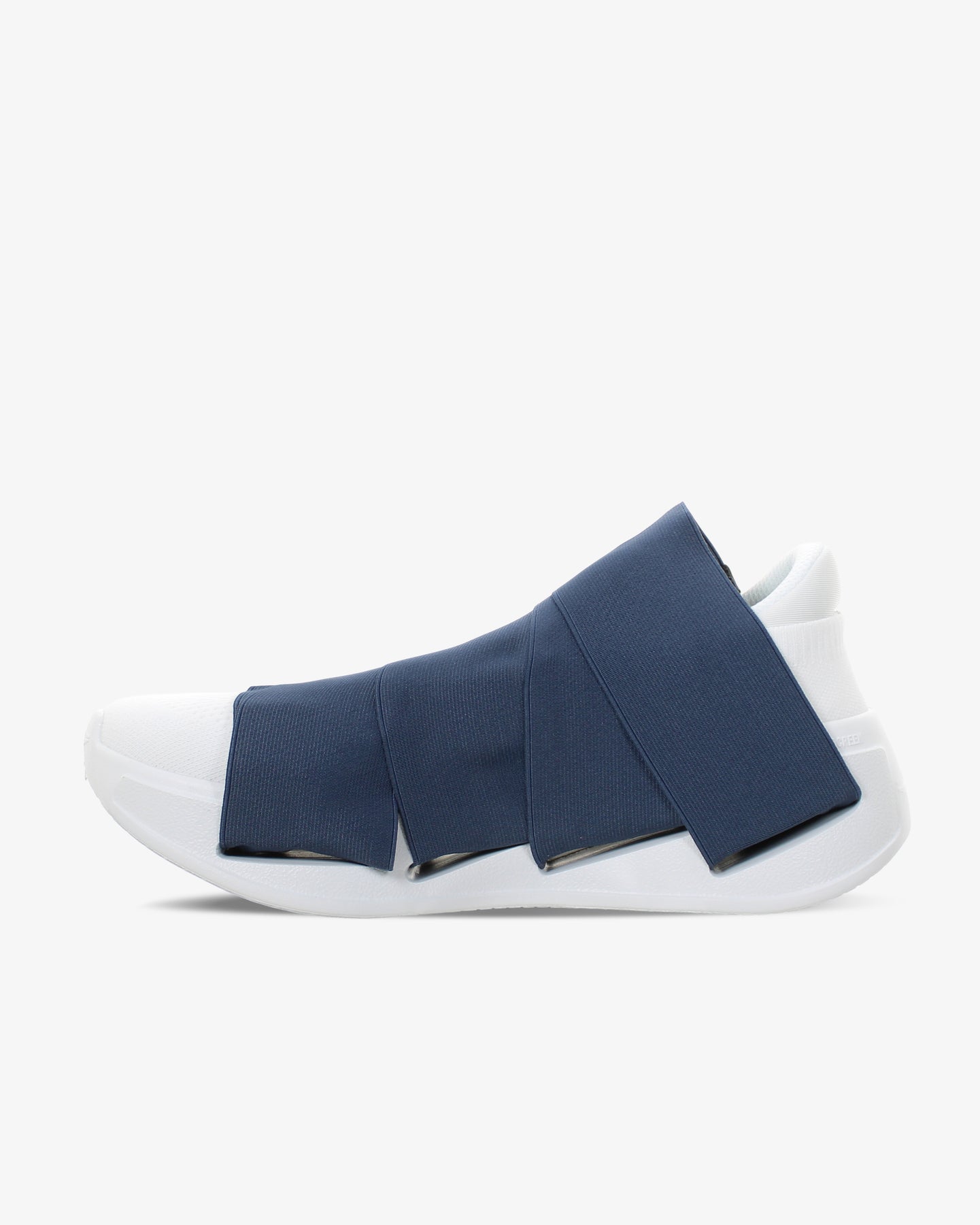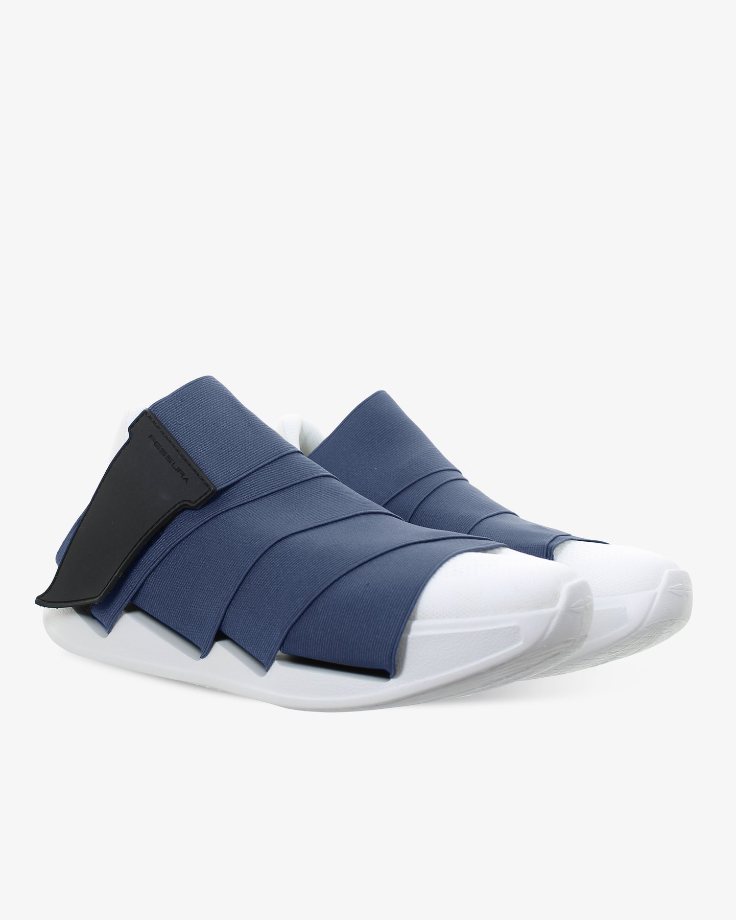 Tomaia elastica di colore blu navy resistente e avvolgente. Apertura e chiusura con velcro in gomma. La mancanza del procedimento di montaggio industriale riduce l’emissione di Co2 (-50%).